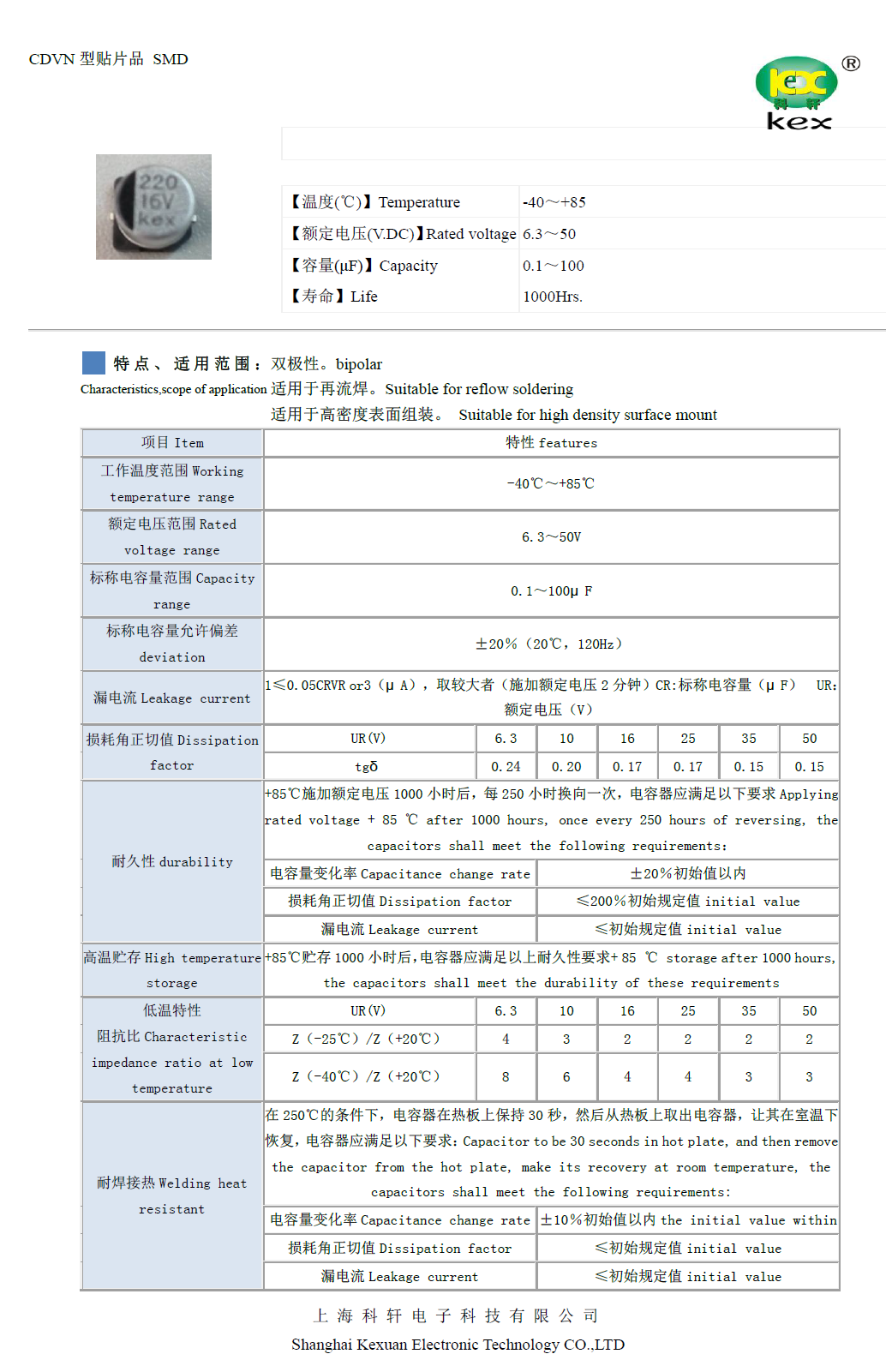 CDVN HW 双极85度1000小时 - 电容器系列 - 上海公海555000电子科技有限公司-----新能源电容 电子元器件
