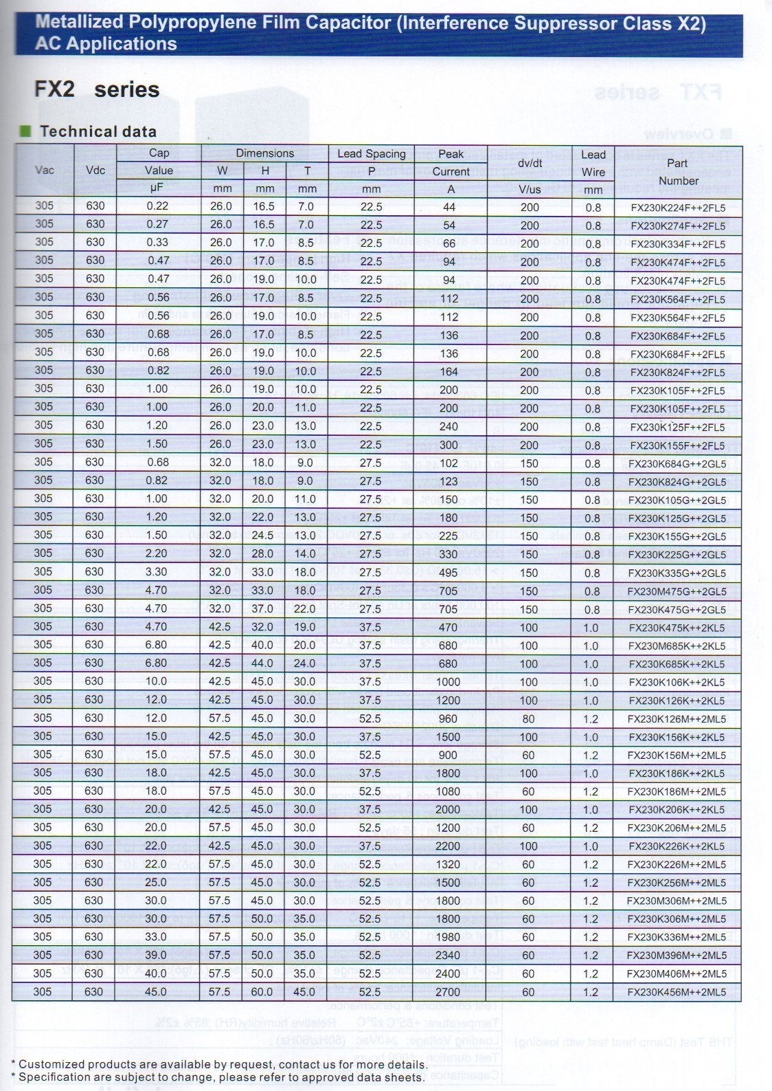 FX2 series - 新能源系列 - 上海公海555000电子科技有限公司-----新能源电容 电子元器件